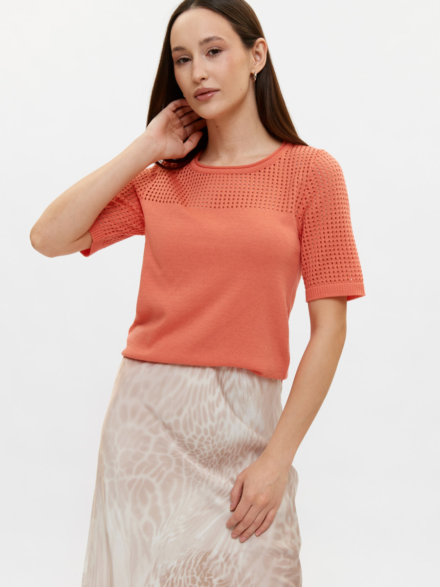 Джемпер короткий рукав л1482 коралл